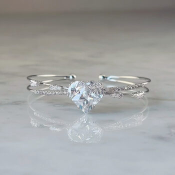 存在感際立つハートジルコニアバングルセンターに配した大粒のハートジルコニアが、