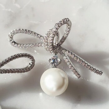 Elegant Ribbon Brilliant Pearl ピアス/イヤリング