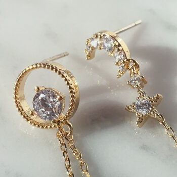 月と星のアシンメトリージルコニアピアス/gold