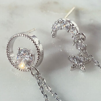 月と星のアシンメトリージルコニアピアス/ silver