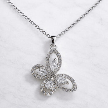 ジルコニアバタフライピアス繊細なチェーンの先に、