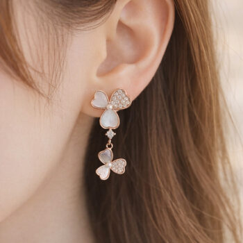 クローバーモチーフロングピアス幸運の象徴でもあるクローバーデザインに、