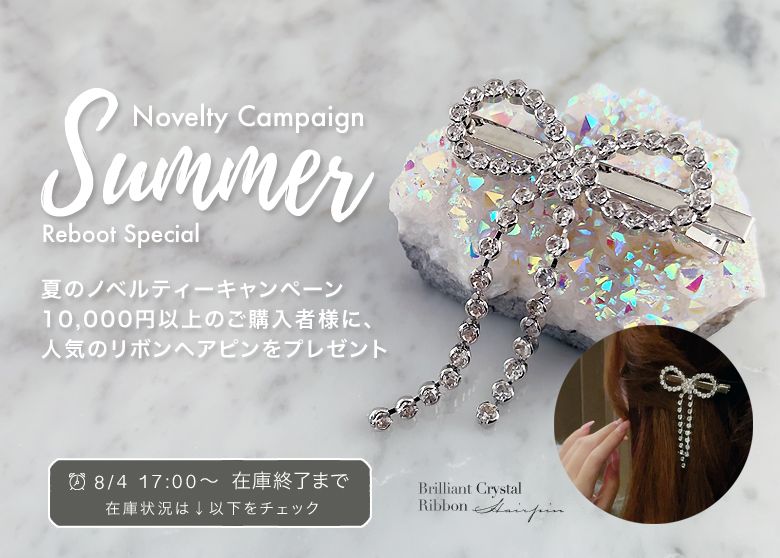 KTY NOVELTY CAMPAIGN | Reboot Special💕前回大好評でリクエストを多数頂いたため、再度開催を決定いたしました🎀✨大胆なクリスタルストーンのリボンモチーフが印象的な、『Brilliant Crystal Ribbon ヘアピン(¥2,400相当)』を用意いたしました🎀大ぶりのリボンモチーフは、ゴージャスで優雅なヘアスタイリングを演出します。遊び心と乙女心くすぐるディテールは、魅力的♡ディズニーコーデやイベントコーデなど、特別な1日にもとってもおすすめです。