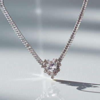 ステンレス製(医療用SUSU316Lサージカルスチール)素材を使用♡優美な首元を演出するエンジェルハート、キュービックジルコニアストーンのハートクリスタルストーンが可愛らしく 可憐な印象を与えてくれる、【金属アレルギー対応/ステンレス】Angel Heart ネックレス。