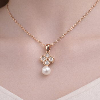 上品なミニクローバーモチーフにパールをあしらえた、愛らしく輝きを与えてくれる、Mini Pearl Clover ネックレス【ニッケルフリー】。