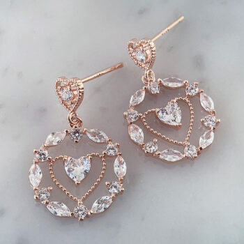 キュービックジルコニアストーンの煌めきが美しく、プリンセス感も感じられるアイテム♡オープンハートのくり抜きに、クリスタルハートはとってもキュート♡つけ心地は軽くデートシーンにもおすすめ♡