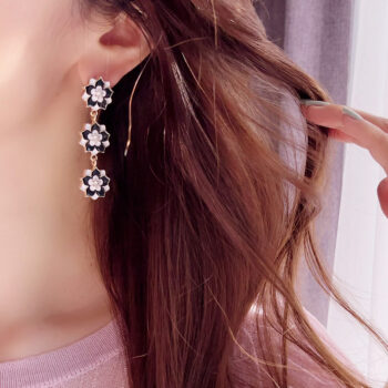 フラワーロングピアス可憐なフラワーモチーフに、