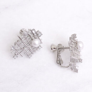 パールグリッドピアス繊細なラインを格子状に重ねた、