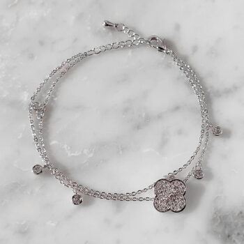 ジルコニアが映えるクローバーブレスレット四つ葉のクローバーをモチーフに、
