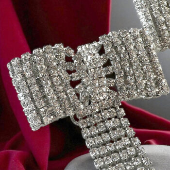 華やかなラインを生み出します。無数のストーンが光を集め、