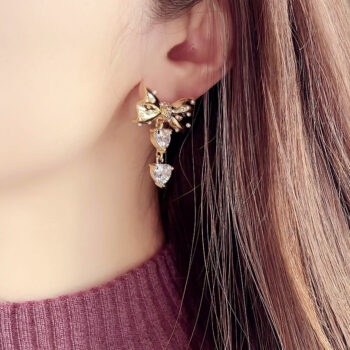 ハートきらめくアシンメトリーピアス高品質プレミアムストーンを使用した、