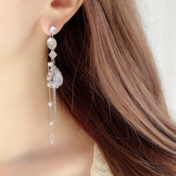 ジルコニアのロングドロップピアス繊細なストーンで描いたオーバルに、