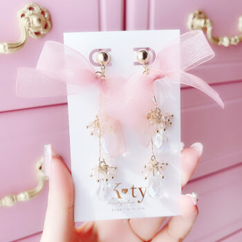 Princess Shine Ribbon Sweet ピアス&イヤリング/Pink ¥3520 (税込)12時までの注文で当日出荷(営業日のみ)合計8,000円で送料無料イヤリング全商品シリコンカバー付きラメのようにやわらかく煌めく