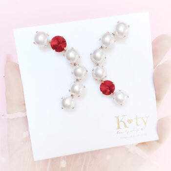 レッドハート、ホワイトラウンド、クリスタル、ピンクドロップの流れるようなディテールは優美な顔周りを彩り、程よいサイズ感はデイリーにも身につけやすい。オーストラリア産の高品質プレミアムストーンを使用し、オーロラのような輝きを放ちながら優雅な印象を与えてくれます。シーズンレスで楽しめて、デートコーデやお呼ばれコーデにもおすすめです。