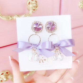 Princess Sugar Ribbon Twinkle ピアス/イヤリング:Purple ¥3520 (税込)12時までの注文で当日出荷(営業日のみ)合計8,000円で送料無料イヤリング全商品シリコンカバー付き