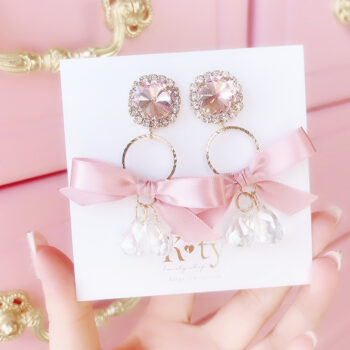 Princess Sugar Ribbon Twinkle ピアス/イヤリング:Pink ¥3520 (税込)12時までの注文で当日出荷(営業日のみ)合計8,000円で送料無料イヤリング全商品シリコンカバー付き