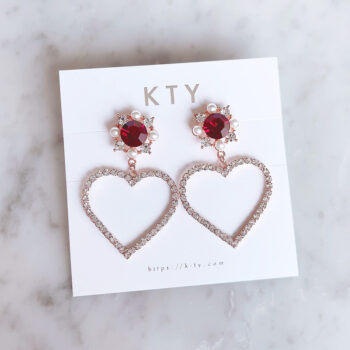可愛らしさと華やかさと兼ね備えた、Lovely Heart Drop ピアス&イヤリング/Red。