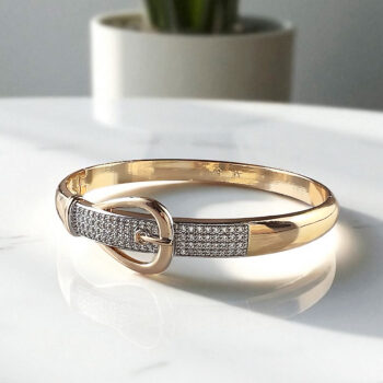 ジルコニアが輝くデザインブレスレットなめらかなラインで描いた、