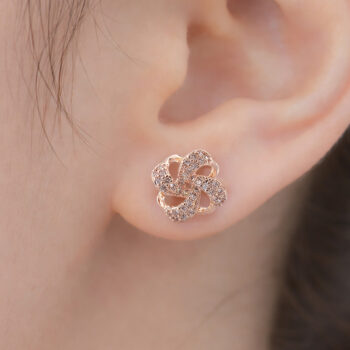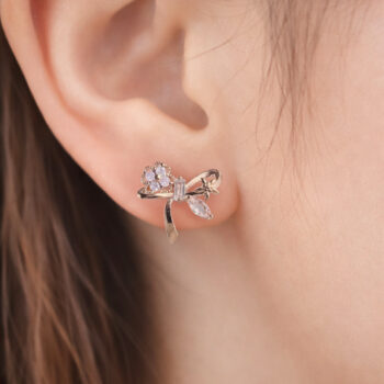 乙女心くすぐるリボンモチーフにキュービックフラワーを添えた、愛らしく可憐な印象を与えてくれる、Cute Ribbon Clover ピアス&イヤリング【ニッケルフリー】。