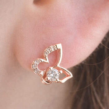 輝くクリスタルストーンに、羽ばたく蝶々モチーフが可愛らしいTwinkle Zirconia Butterfly ピアス/Pink Gold♡