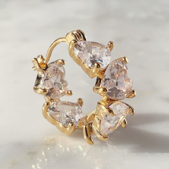 ワンタッチ式の優美なハートフープピアス♡キュービックジルコニアストーンの煌めくハートモチーフを上下交互に敷き詰め、全方位にまばゆい輝きを放ちます。小ぶりながら、洗練された華やかな印象を与えてくれます。海外ファッションがお好きな方にもおすすめ♡扱いやすく、シーンやシーズンを問わずに着用していただけるアイテムです。高品質のメッキで、耐久性に優れ変色しにくく、長くご愛用いただけます。在庫あります(すぐ発送可能)