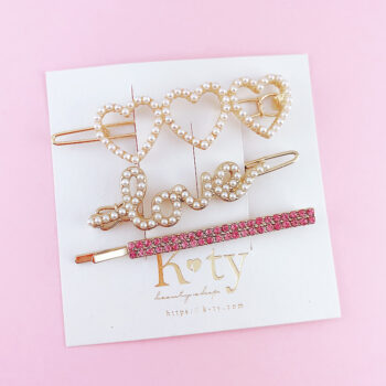 ヘアクリップ3点セットハートモチーフと“LOVE”デザインが、