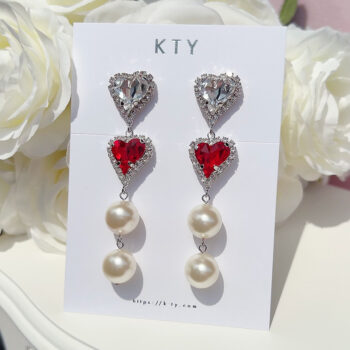 ハートもパールもスワロフスキー素材を使用しているので、品質が良く優美に輝きを放ちます。カラーは、クリスタル、クラシックな色合いででもキラッと光るピンクが可愛い赤色のスカーレット、アイボリーカラーのパールデザインがとっても可愛い♡全方位に煌めきを放ち、パールはエレガントな印象もプラスオン♡とても軽く、つけ心地も最適でシーズンレス着用していただけます。また、大切な人への気持ちを伝えるプレゼントとしても最適です。 -