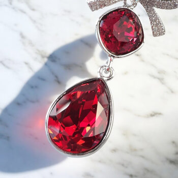 クラシックな色合いででもキラッと光るピンクが可愛い赤色スワロ フスキー「Scarlett」カラーをふんだんに使用した、最高の輝きと優美で洗練された魅力を引き出します。様々なシチュエーションに合わせられる、Jewel Ribbon Scarlett ピアス&イヤリング。トップはリボンモチーフに、鮮やかで深みのある赤色を表現しているスカーレットのストーン光を反射することで美しい輝きを放ちます。情熱やエネルギーを象徴する色としても知られており、、身に着けると目を奪われるほど美しい♡シーズンレス着用していただけます。また、大切な人への気持ちを伝えるプレゼントとしても最適です。 -