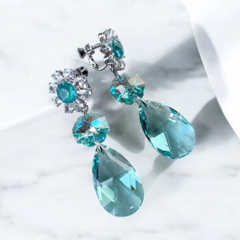 ブルーシェードのウォータードロップは、立てると透明感がありながらも高級感のあるブルーが優しく輝き、オーロラベースで優美に輝きを放ちます。トップのレッドカラーがゴージャスでハートリボンモチーフはプリンセス感もプラス♡このウォータードロップスワロ フスキーは底のカットが本当に綺麗なので、特別なシーンにもおすすめなジュエリーアクセサリーです♡ -