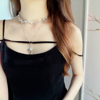 優雅なムードを演出してくれるWhite Rose Choker ネックレス。ホワイトローズの美しいフラワーとクロスディテールが際立つレイヤードチョーカーネックレスです。