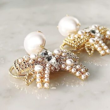 ぷっくりしたリボンモチーフには、高品質なクリスタルストーンやパールを散りばめ、揺れるたびにラグジュアリーに顔周りを彩ります。モノトーンコーデやお呼ばれコーデにもぴったりで、SNS映えも◎シーズンレスで着用でき、贈り物にも大変喜ばれます。 -
