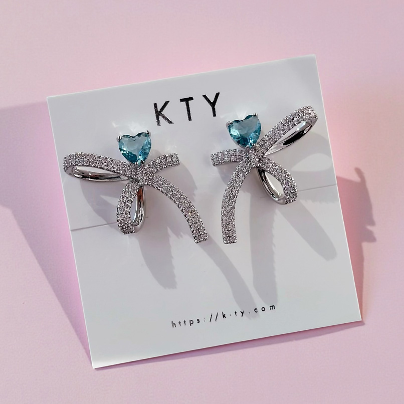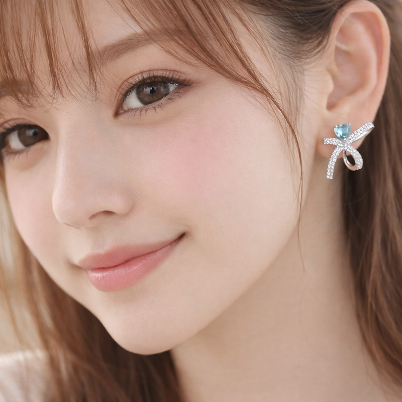 気品溢れる優美なリボンモチーフにブルーハートモチーフをあしらい、愛らしさと高級感を放ちます。つけ心地は軽く、デイリー使いからオケージョンシーンまで幅広く着用していただけます。ご自身用としてはもちろん、贈り物にも最適♡同デザインのブルーカラーはこちらをクリック♡