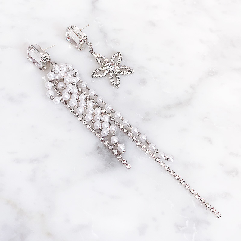 お星さまモチーフに、キラキラストーンやパールをあしらったアシンメトリーデザインの優雅なTwilight Moon & Pearl Star ピアス/イヤリング♡