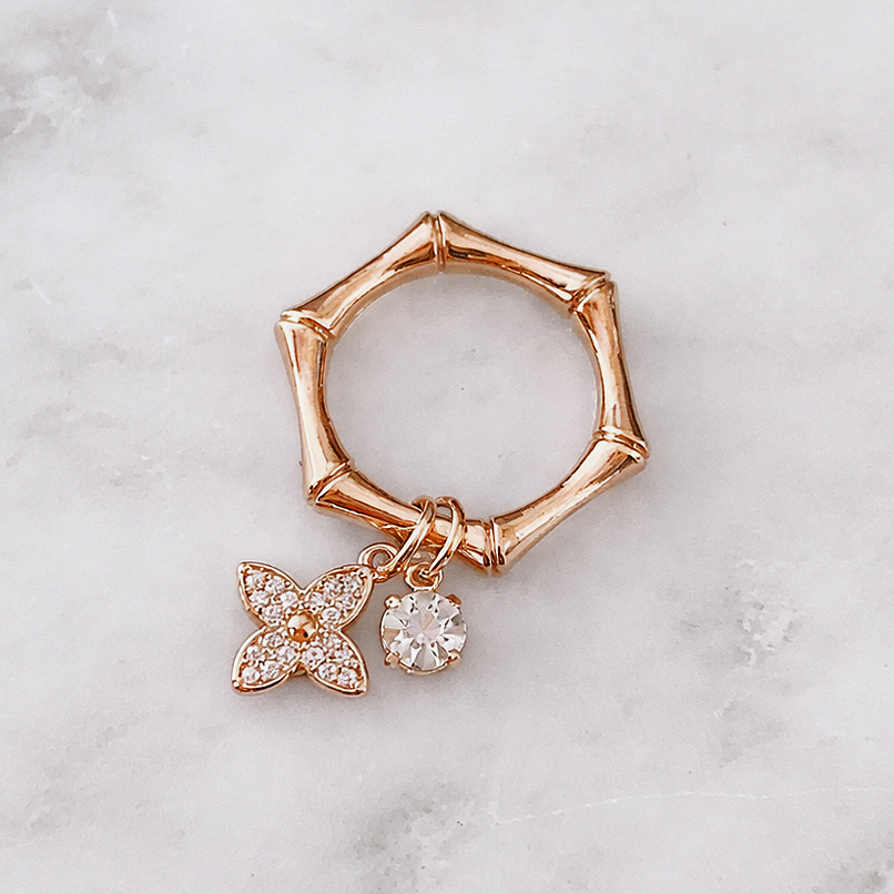 フラワーとクリスタルのリング