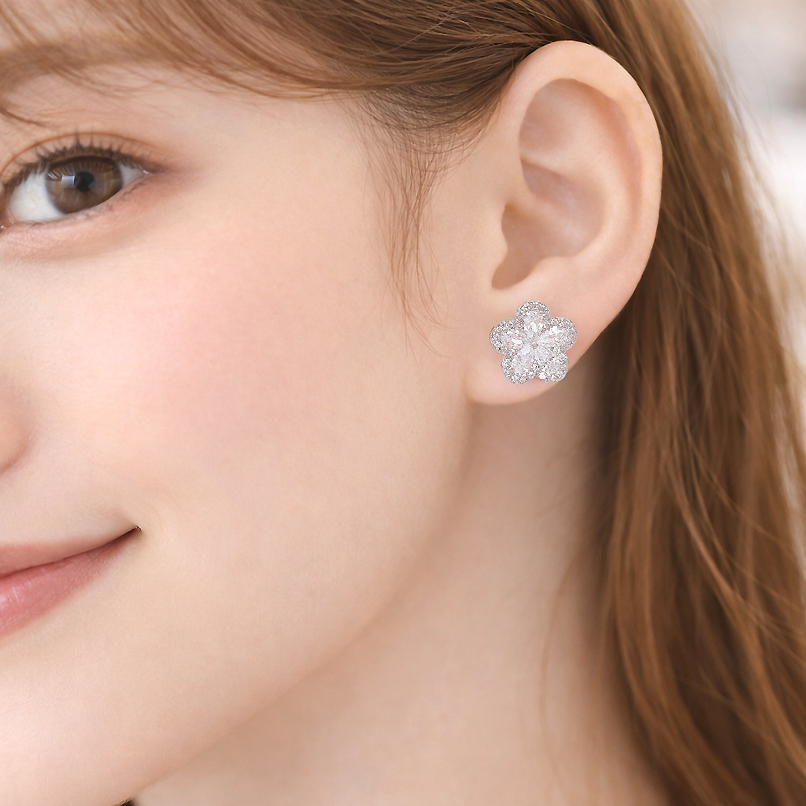 綺羅びやかな輝きを放つショートサイズのJewelry Flower Style Zirconia Short ピアス&イヤリング/Silver♡