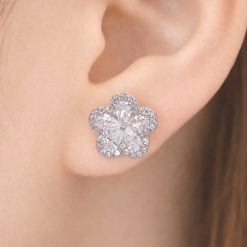 Jewelry Flower Style Zirconia Short ピアス&イヤリング/Silver