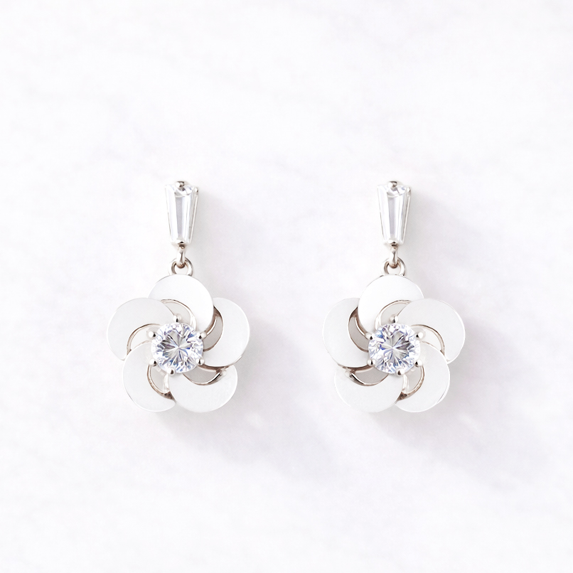 Elegant Shell Flower Zirconia ピアス&イヤリング/Silver【ニッケルフリー】