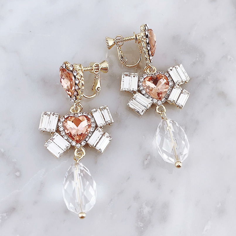 Fairytales Heart Ribbon ピアス&イヤリング/Peach