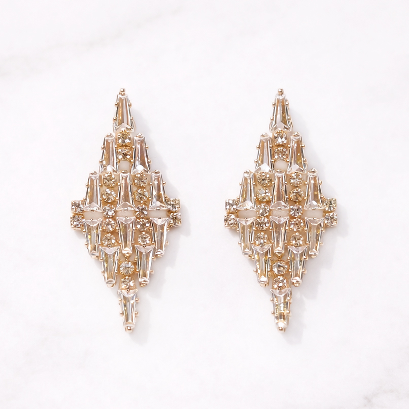 キュービックジルコニアストーンのロングデザインに、クリスタルなスクエアストーンが美しい♡顔まわりをゴージャスに演出し、揺れるたびに輝きをプラスオン♡SNS映えも抜群で、夜のルックやディズニーコーデなど華やかな場面にもおすすめ♡