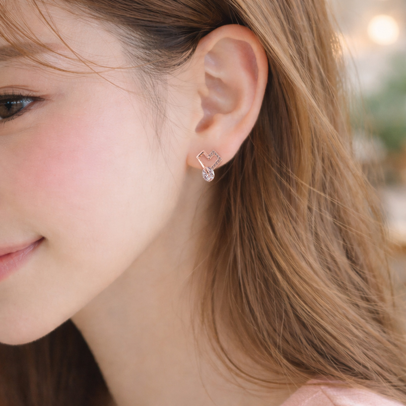 洗練されたクールなオープンハートモチーフに煌めきをプラスオンした、Cool Zirconia Heart ピアス/イヤリング。