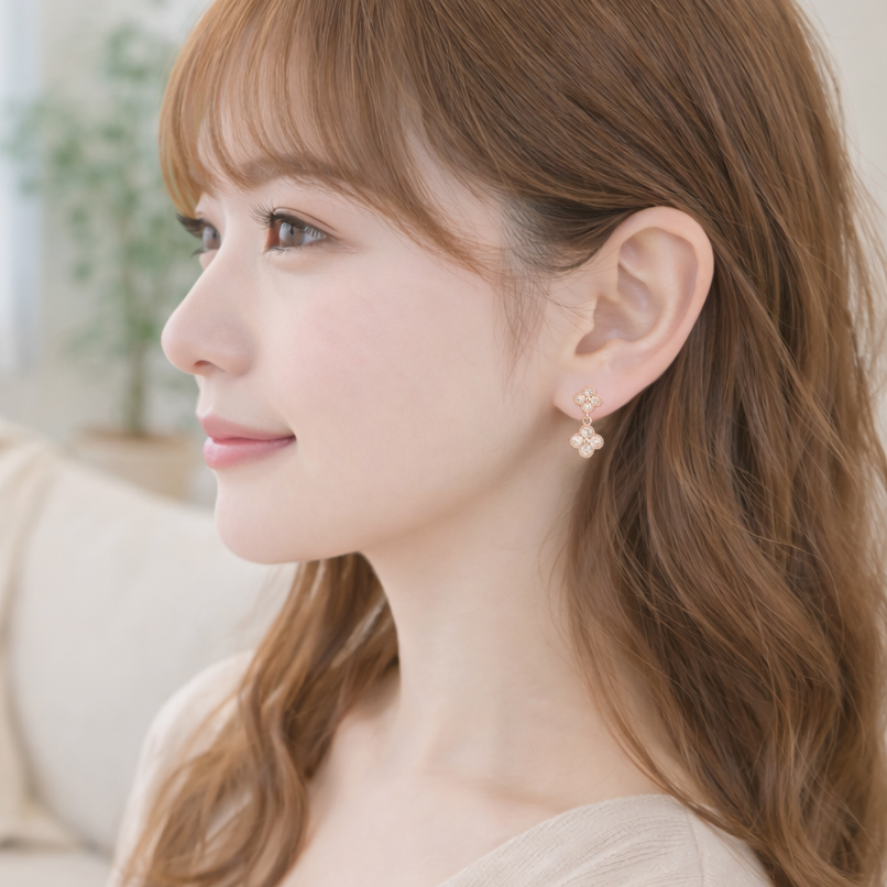 上品なミニクローバーモチーフが愛らしく輝きを与えてくれる、Mini Brilliant Clover ピアス/イヤリング。
