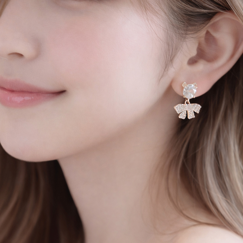 キュービックジルコニアストーンの煌めきが美しく、プリンセス感も感じられるアイテム♡リボンモチーフが揺れるととってもキュート♡つけ心地は軽くデートシーンにもおすすめ♡