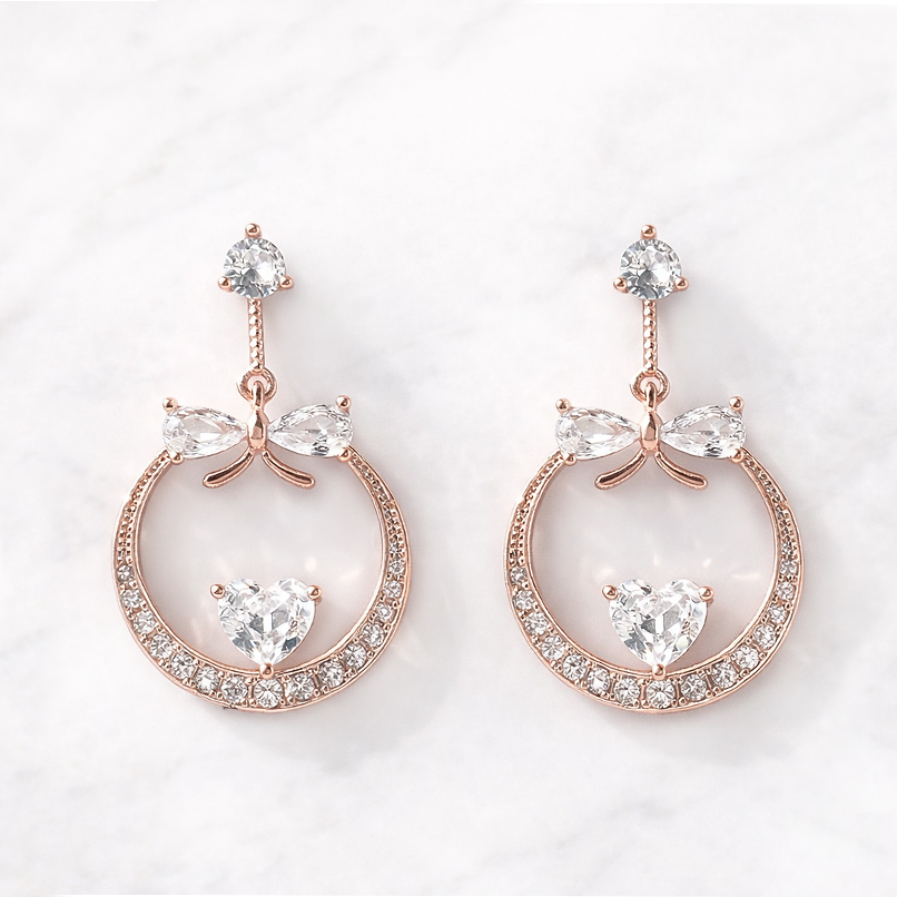 立体的なリボンやハートモチーフはキラキラでとっても可愛い♡抜け感もあり、洗練された愛らしい印象も与えてくれます。つけ心地は軽く、お呼ばれコーデやデートコーデにもぴったり♡高品質のピンクゴールドメッキは優美で可憐な雰囲気をアップしてくれます♡