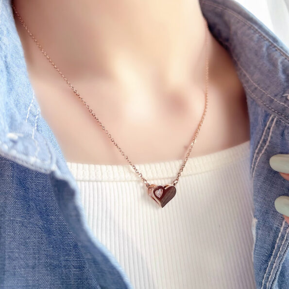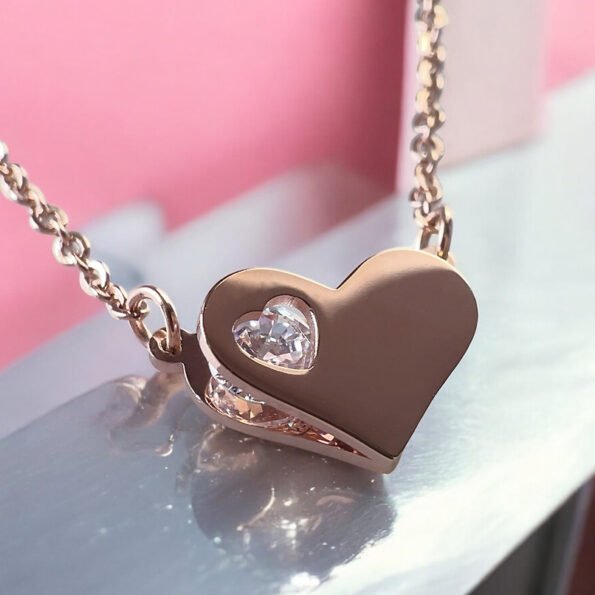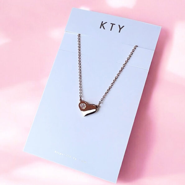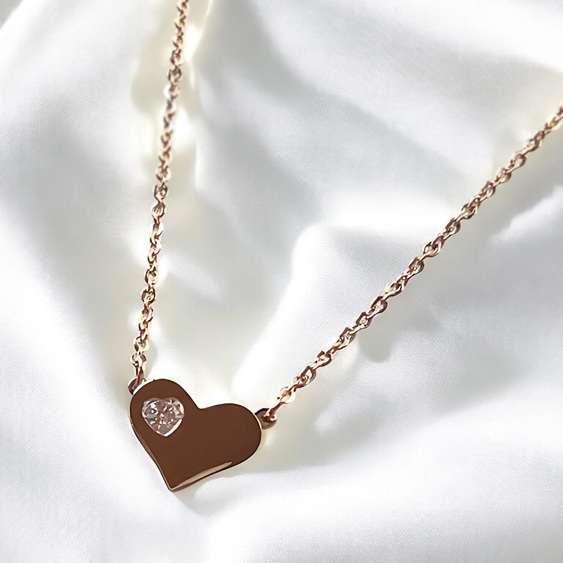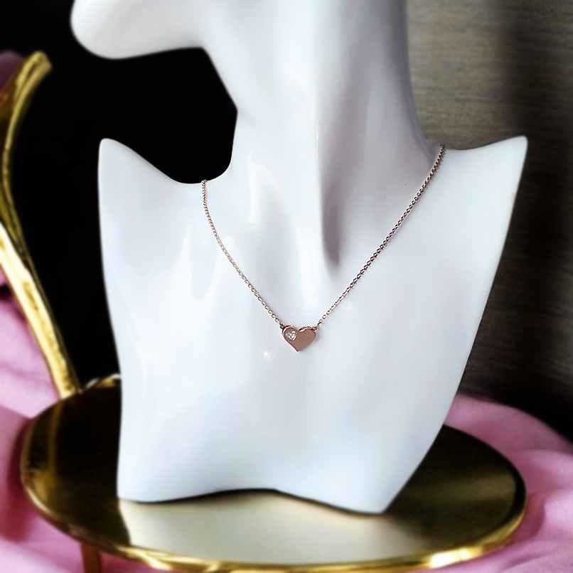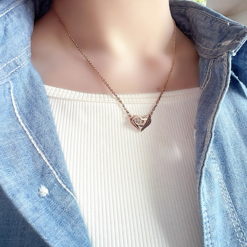ステンレス製(医療用SUSU316Lサージカルスチール)素材を使用♡優美な首元を演出するエンジェルハート、キュービックジルコニアストーンのハートクリスタルストーンが可愛らしく 可憐な印象を与えてくれる、【金属アレルギー対応/ステンレス】Angel Heart ネックレス。