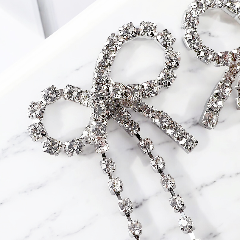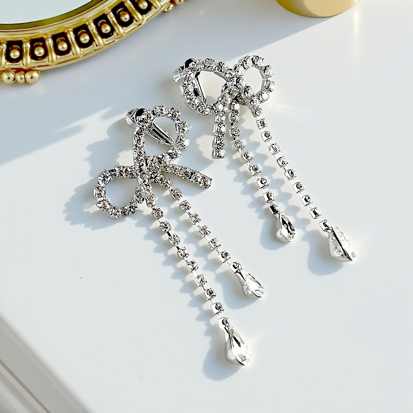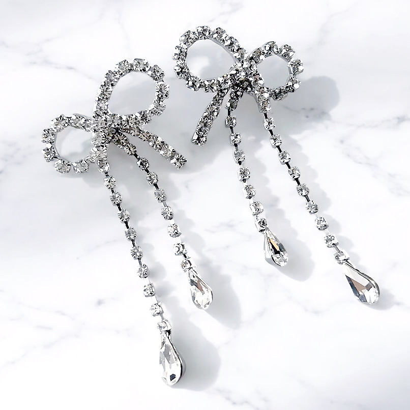 気品漂うリボンモチーフのロングピアス。