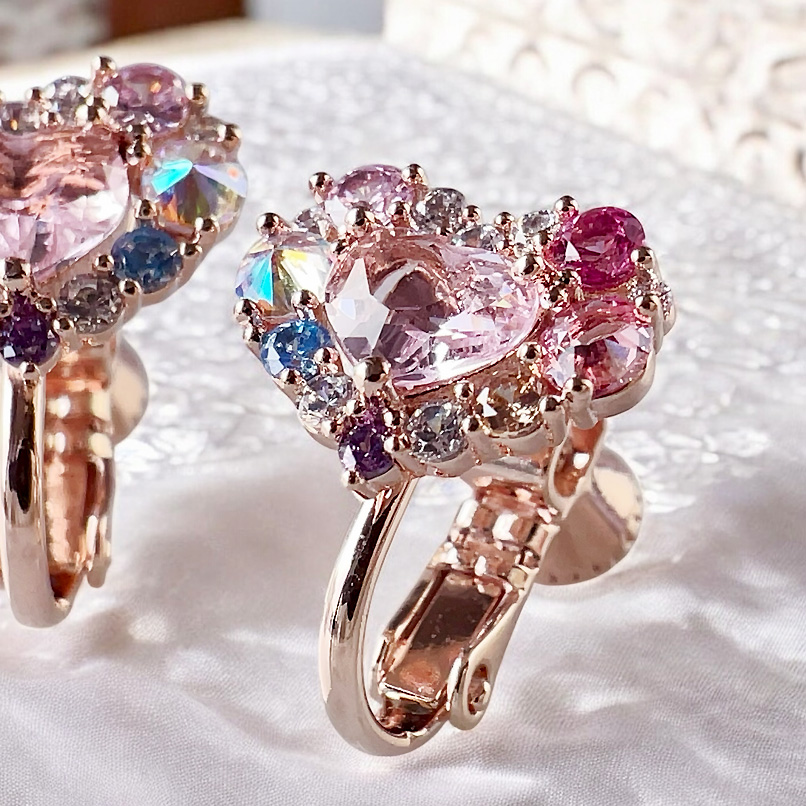 立体的なリボンやハートモチーフはキラキラでとっても可愛い♡抜け感もあり、洗練された愛らしい印象も与えてくれます。つけ心地は軽く、お呼ばれコーデやデートコーデにもぴったり♡高品質のピンクゴールドメッキは優美で可憐な雰囲気をアップしてくれます♡