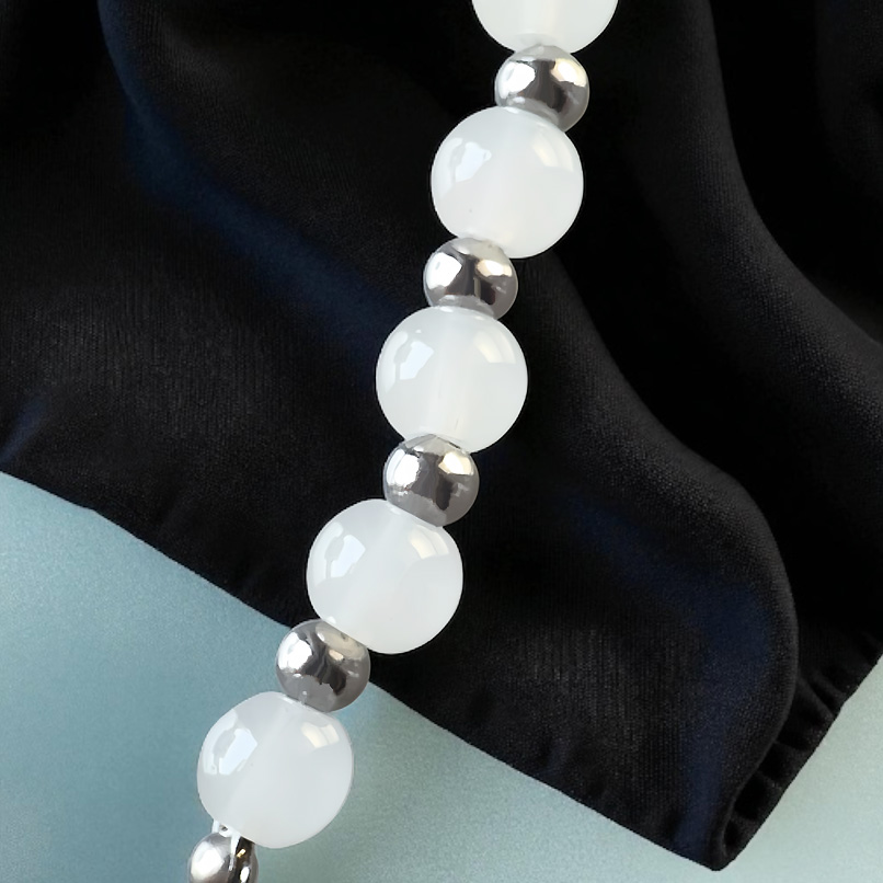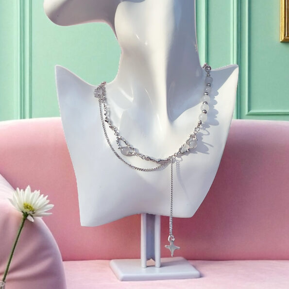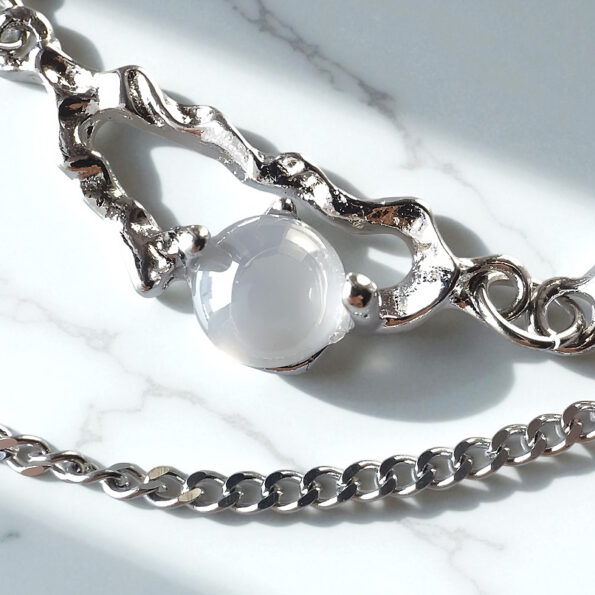 ステンレス製(医療用SUSU316Lサージカルスチール)素材を使用♡優美な首元を演出するサークルモチーフ、ホワイト&クリスタルストーンの優雅な印象を与えてくれる、【金属アレルギー対応/ステンレス】Elegant Circle ネックレス。