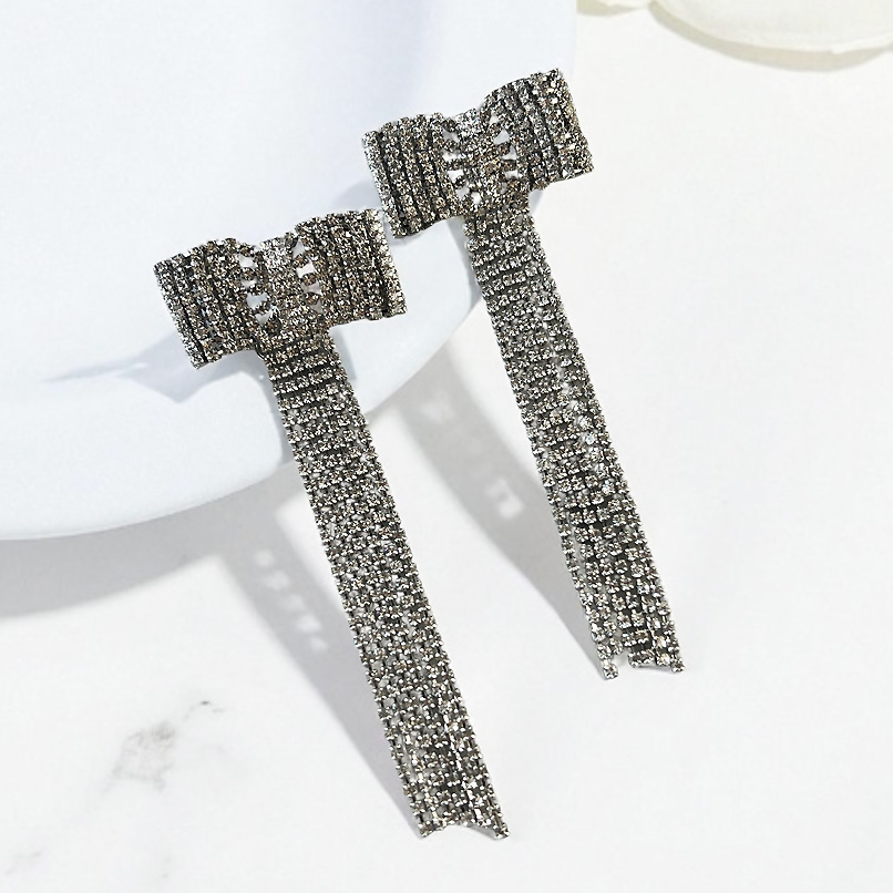 プリンセス感とロングパールの華やかさに目を奪われるGirly Matte Ribbon Long Pearl ピアス&イヤリング/Black♡