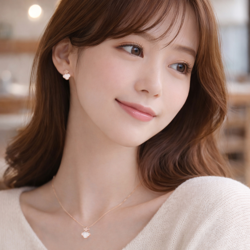 煌めくクローバーの組み合わせは儚げで可愛い♡美しいピンクゴールドメッキに、キュービックジルコニアストーンをあしらったアクセサリー♡デイリーからお呼ばれコーデまで幅広く着用でき、シーズンレスで楽しめます♡つけ心地も抜群でネックコーデと儚げに華奢な印象を与えます♡シーズンレスで着用でき、場面も選ばないので贈り物にも最適です。金属アレルギーの主な原因となるニッケルを含まず、お肌に優しい仕上げとなっています。同デザインのピアスorイヤリングとセットで着用していただくのもおすすめ♡