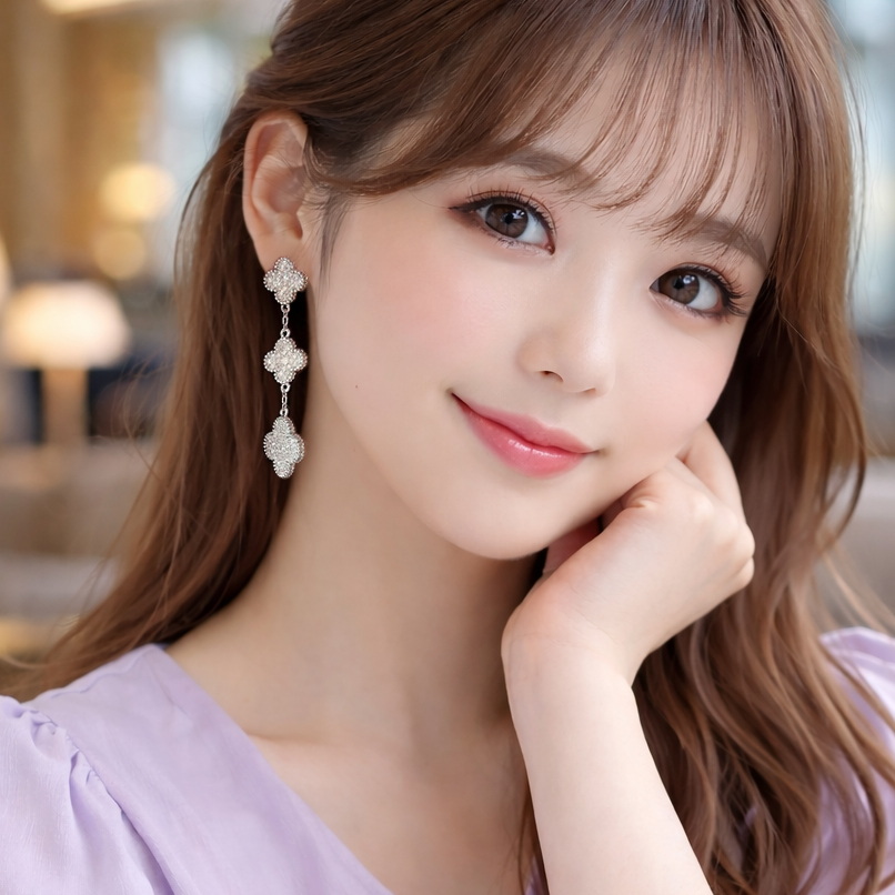 幸運のシンボル「四つ葉のクローバー」。キュービックジルコニアストーンの輝くクローバーモチーフは華やかさをプラスオンしてくれる、3Clover Pendant motif ピアス。全方位にストーンを敷き詰め、どの角度から見てもゴージャスで煌びやかな印象を与えてくれます。メッキはシルバーカラーでジュエリー感たっぷり。シーズンレスで着用でき、場面も選ばないので贈り物にも最適です。高品質のメッキで、耐久性に優れ変色しにくく、長くご愛用いただけます。